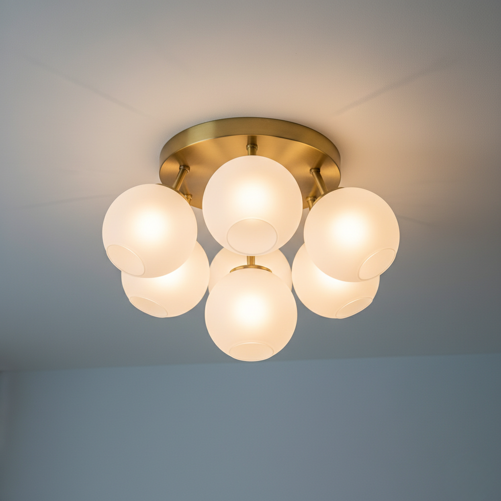 Candeeiro de Teto Moderno Branco Emma: Traga um aspeto contemporâneo e elegante ao seu quarto com o Candeeiro de Teto Moderno Branco Emma. Este candeeiro refinado com dois abajures oferece uma iluminação suave e acolhedora, perfeita para qualquer quarto moderno.